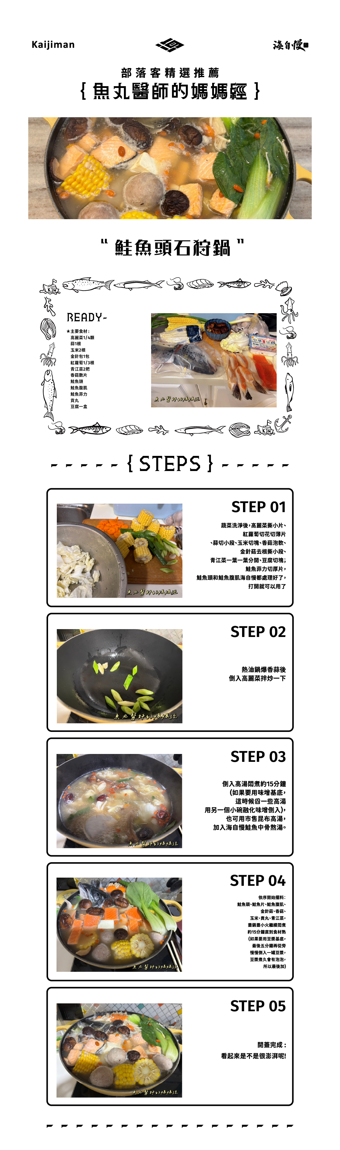 2024年有幸認識了海自慢,認識一夜干更相信職人精神嚴選處理的漁獲,一定新鮮好吃而且食安無虞。年節除了買一夜干年節禮盒之外,我還添購了鮭魚系列,酷寒的冬天想煮一鍋鮭魚頭石狩鍋,暖身又飽腹還有滿滿的優質蛋白質,料理零技巧,只要會擺盤煮熟就好,一家人圍爐吃好幸福好開心。