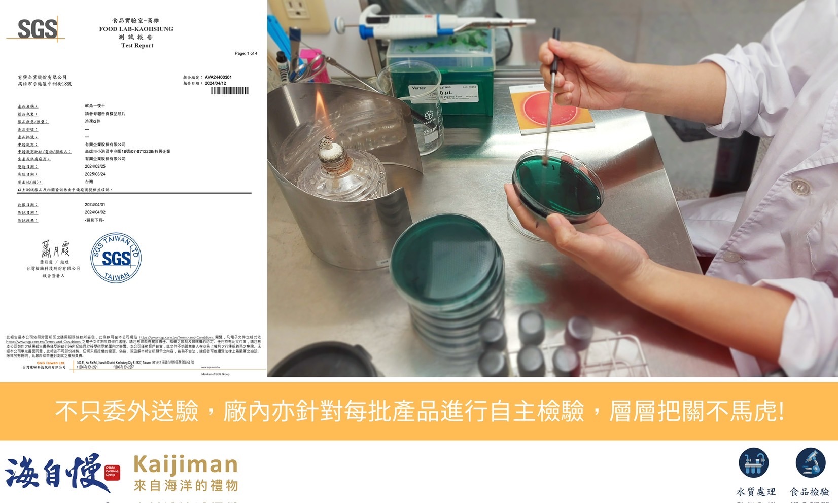 海自慢自有加工廠水質有著雙重殺菌(臭氧、紫外線)系統的控管,在生產過程中用最簡單天然的方式來處理,無添加物,保證純粹的味道。